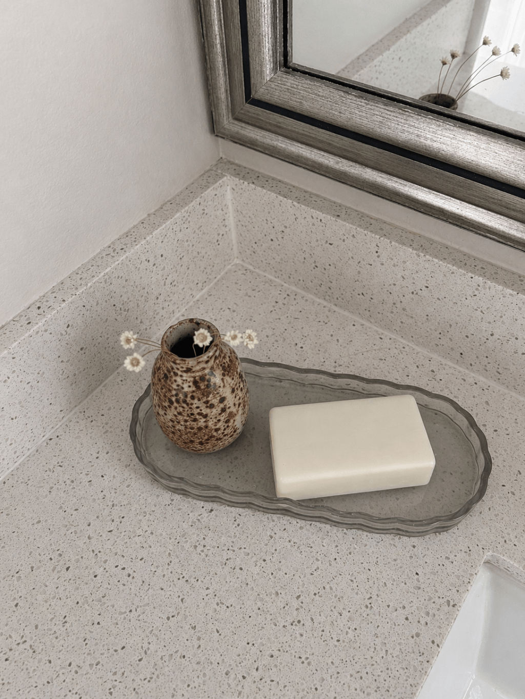 The sea glass style soap tray is also from Target, and the little vase was a thrift find (I think it was $5 or less). It’s honestly one of my favorite pieces—it just makes me happy every time I see it.